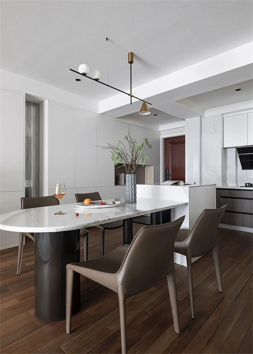 L型开放式厨房布局宽敞明亮,整洁有序,让理想中的美食有了更多的互动性和可能性。